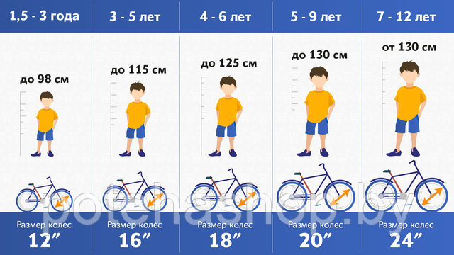 Для выбора детского велосипеда по росту ориентируйтесь на эту таблицу