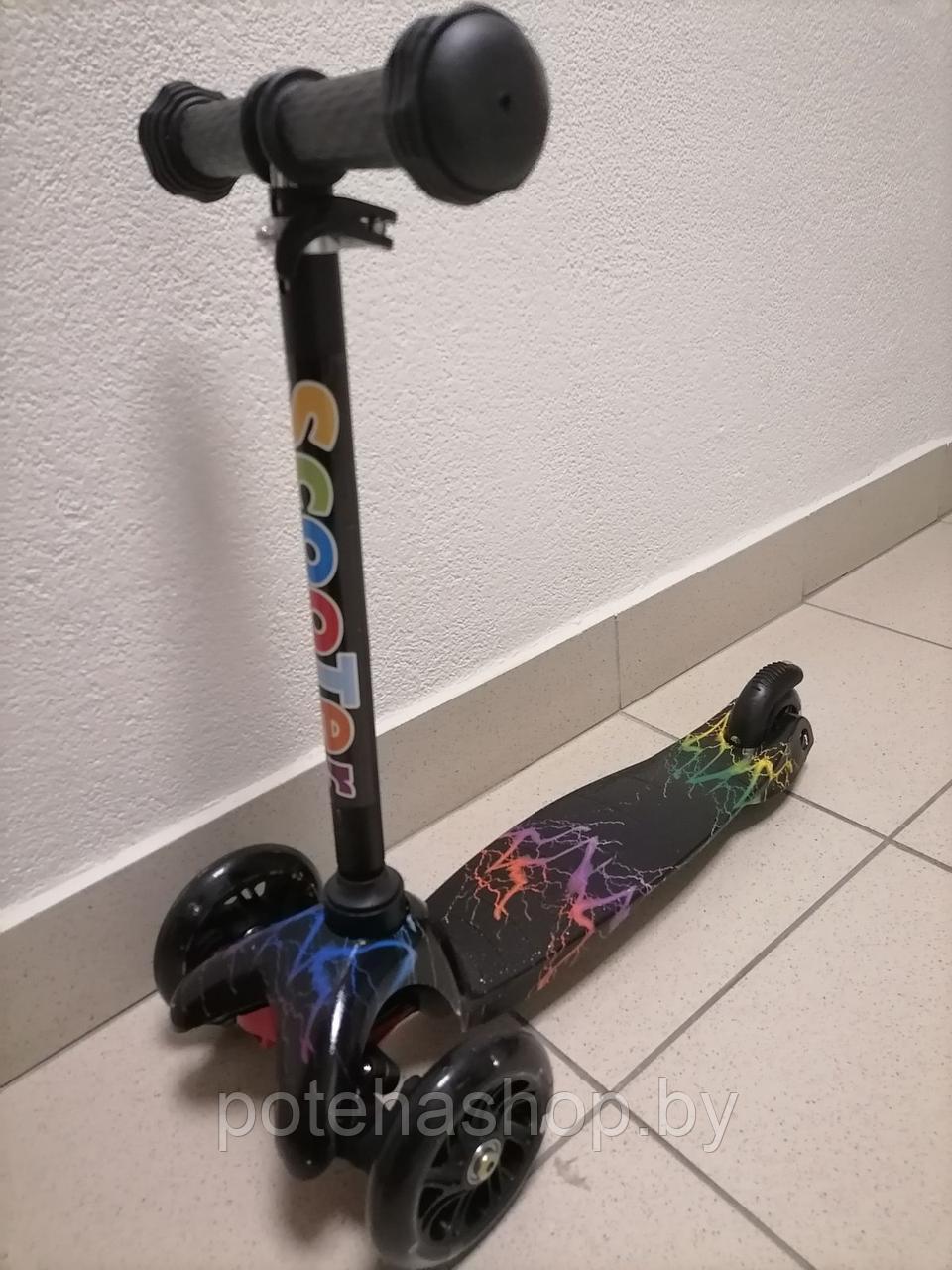 Детский трехколесный самокат со светящимися колесами - отличное приобретение для ребенка от 1,5 года.